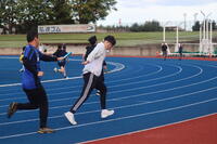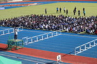 秋晴れのなか、全校生徒が宮城野原公園総合運動場に集い、トラック競技、高跳び、綱引きなど16競技を競いました。
