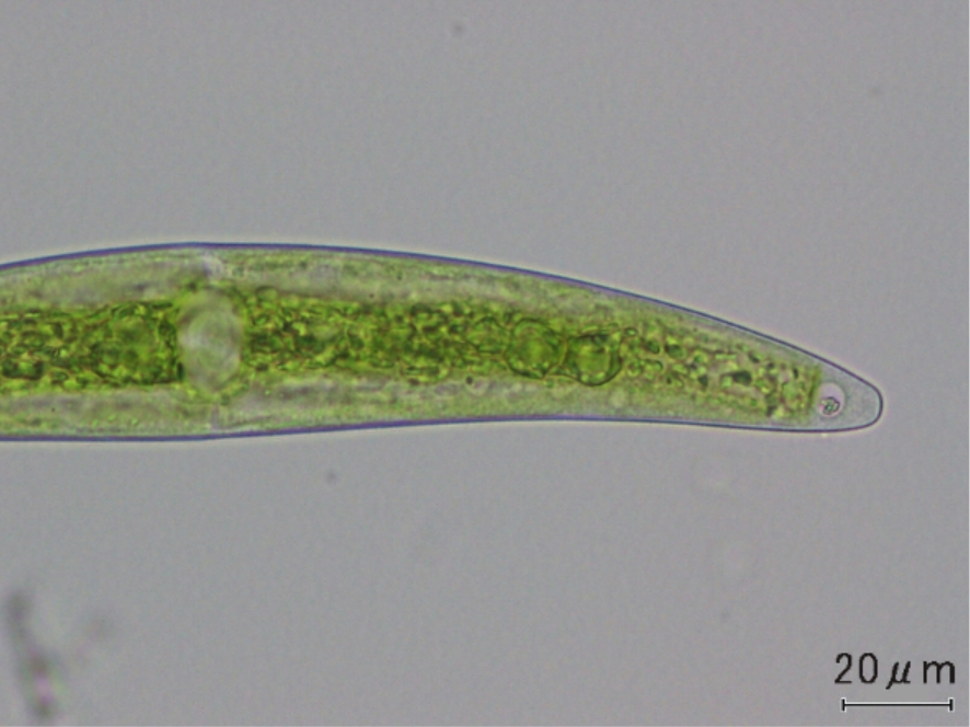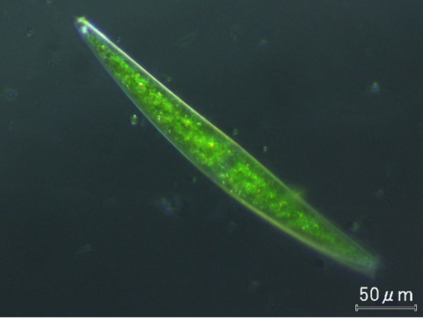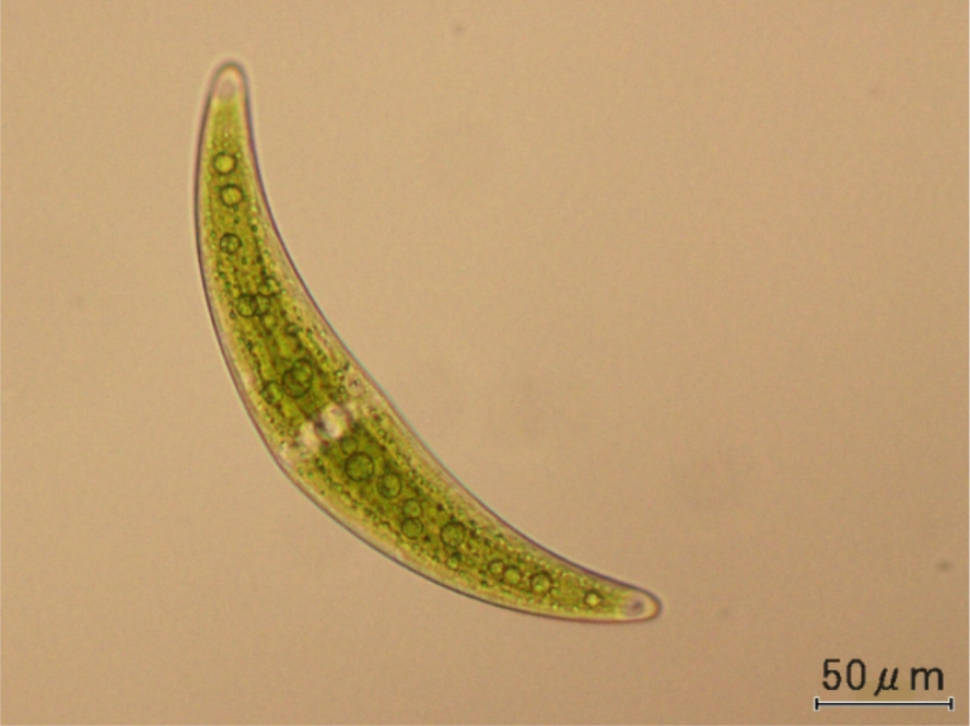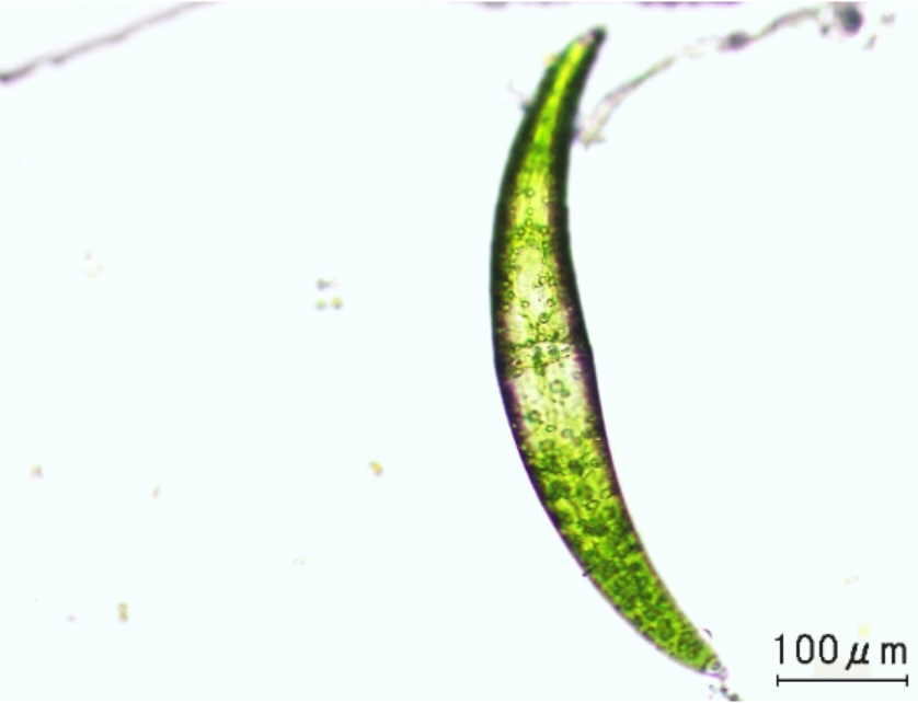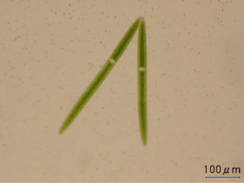 分裂途中でまだ伸びきっていないナガミカヅキモ。