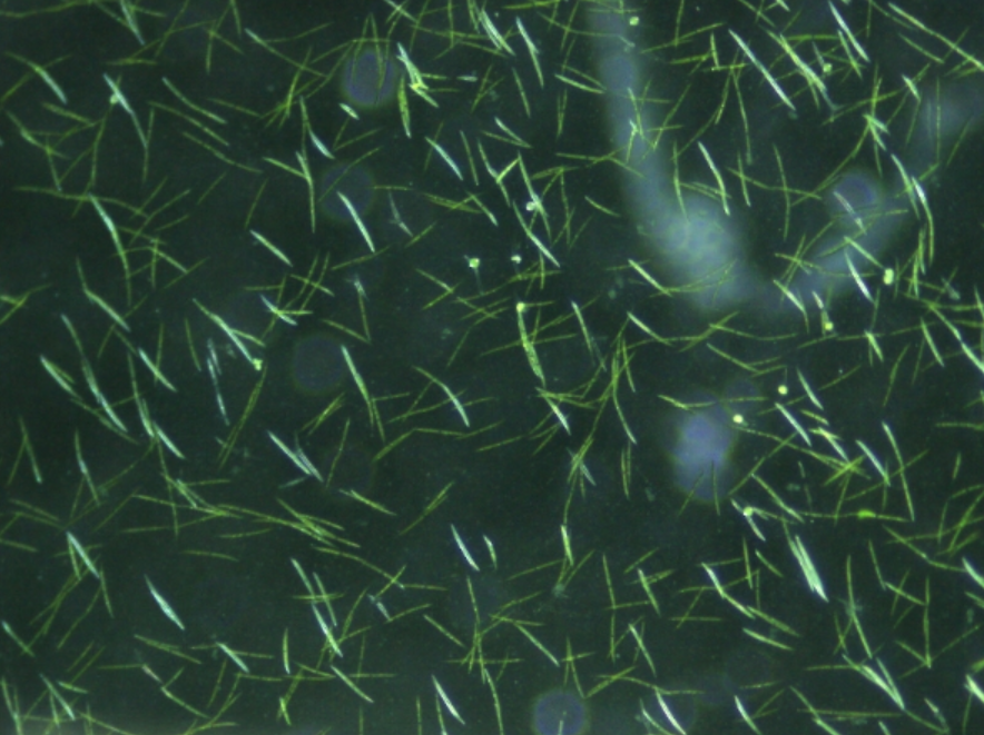 ミカヅキモの群れ。培養容器を真上からみるとこのように見える。